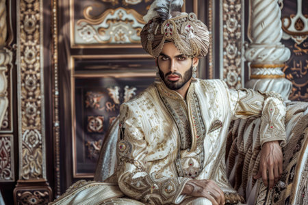 Portrait of a handsome Arabian man in a turban. Men's beauty, fashion.