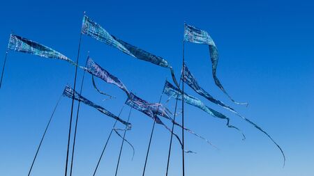 Carp streamers on the riverbed of the Onga River fluttering in the wind