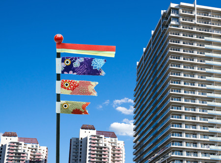 Carp streamers swimming in a line. Shooting Location: Kanagawa Ward, Yokohama City