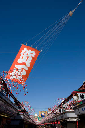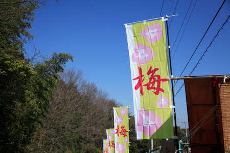 Tokyo, Japan, November 1, 2023: Colorful banners with Japanese writing flapping outside a building