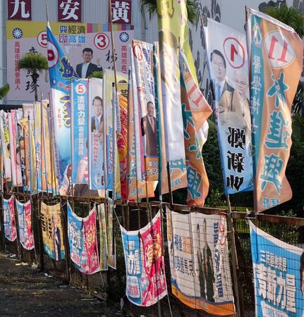 KAOHSIUNG, TAIWAN -- NOVEMBER 28, 2014: Local election 2014 in Taiwan. A veritable forest of election flags promotes the candidates of the various parties.