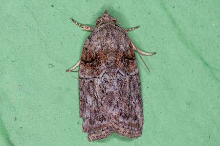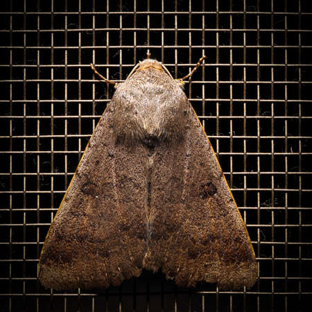 Full body closeup on the Common rustic moth, Mesapamea secalis, on a piece of wood