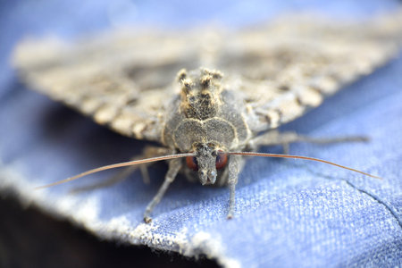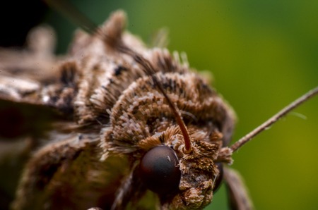 Macro detail of the head of Mormo maura, moth of the Noctuidae family. Located in an old abandoned building in La Rioja, Spain.