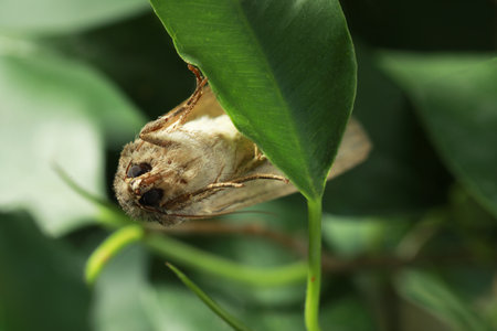 Majestic Moth Resting on Lush Green Foliage in Natural Habitat.