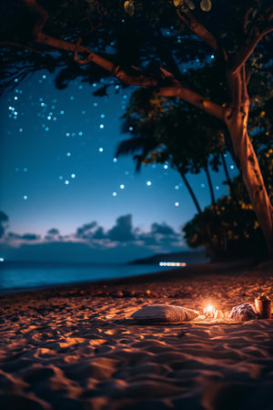 Romantic Beach Evening with Candlelight Under the Starry Sky.