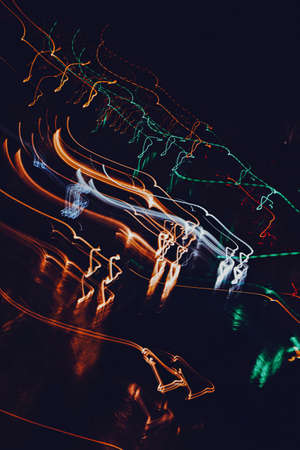 Abstract background of city lights made with long shutter speed. Lights photo art.
