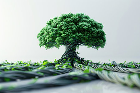 Green tree on white background. 3D illustration. Ecology concept.