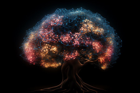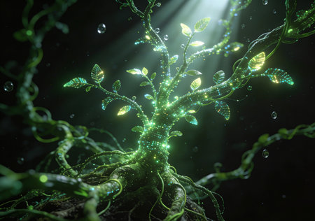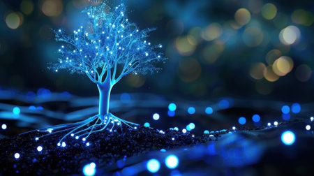 A stunning digital representation of a luminous tree symbolizing growth and technology. The artwork blends nature's beauty with futuristic elements, perfect for creative projects.