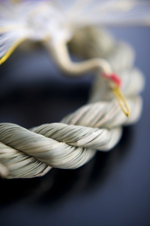TOKYO,JAPAN-May 2, 2017: A traditional sake bucket used for wrapping with straw. Set up on the way to the Meiji Jingu Harajuku shrine for tourists to see.