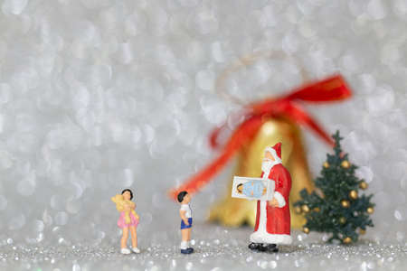 Miniature people, Happy family celebrating A Christmas
