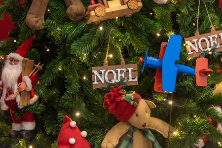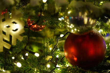 Christmas decoration in Christmas tree with Christmas lights