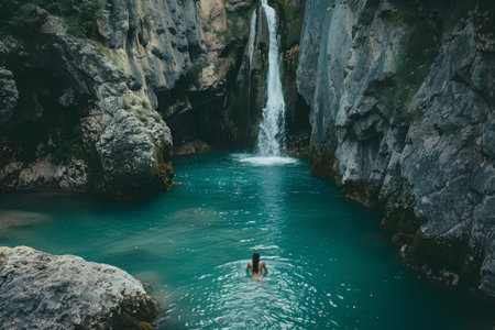 Young hiker admiring the breathtaking natural hot springs and picturesque landscape of Fontcalda in Catalonia, Spain
