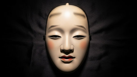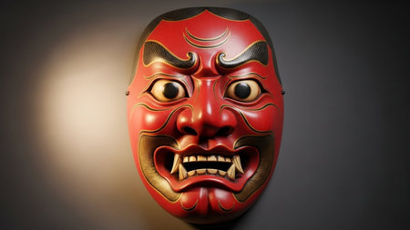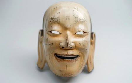 The Spiritual Aura of Japanese Noh Masks On White Background.