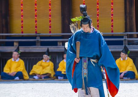 KYOTO - MAY 15 : Participants in Aoi Matsuri in Kyoto, Japan on May 15 2018. Aoi Mastsuri is one of the three main annual festivals held in Kyoto, Japan