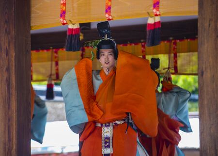 KYOTO - MAY 15 : Participant in Aoi Matsuri in Kyoto, Japan on May 15 2018. Aoi Mastsuri is one of the three main annual festivals held in Kyoto, Japan