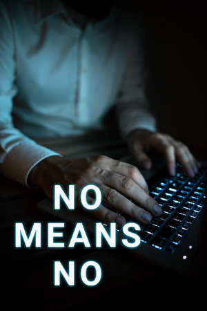Conceptual caption No Means No. Word for Stop abuse gender violence Negative response Sexual harassment