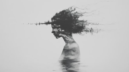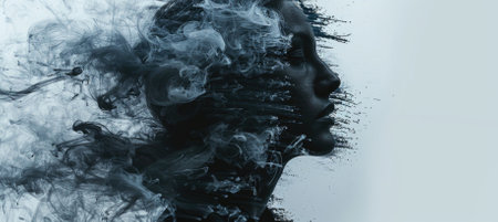 This abstract image features a human silhouette integrated with liquid-like patterns, creating a mesmerizing visual that evokes emotion and intrigue.