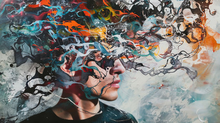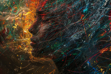A person's thoughts and emotions are like a jumbled mess, representing the chaos of anxiety. Generative AI