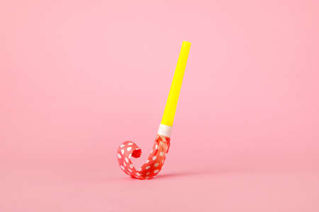 Birthday whistle over pink background, celebration and party concept