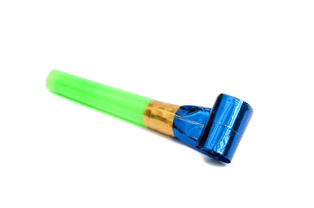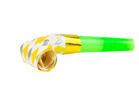 Party foil whistle on the white background