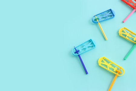 Purim celebration concept (jewish carnival holiday). Top view of noise maker traditional toy