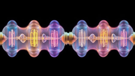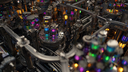 This image showcases a mesmerizing close-up view of vintage vacuum tubes and intricate mechanisms, highlighting vibrant colors and complex engineering.