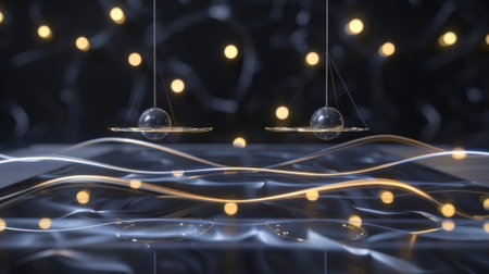 A pair of perfectly balanced scales demonstrating how changes in one entangled particle are immediately reflected in the other