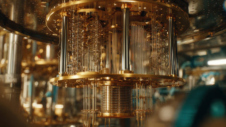 A detailed view of a quantum computers complex internal structure, highlighting its advanced technology and design.