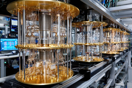 Advanced quantum computing systems display intricate components in a high-tech laboratory.