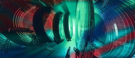 Quantum cryptography. 3D illustration of a futuristic computer.