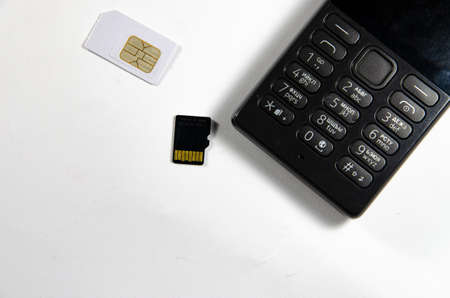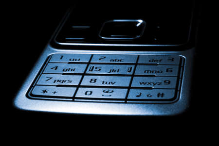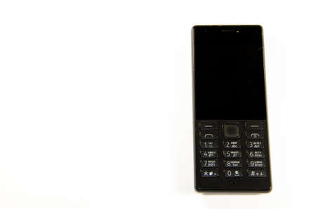 Keypad mobile and two smart phones in different sizes isolated on black background. Selective focus