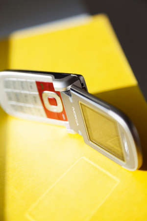 Umea, Norrland Sweden - April 21, 2019: old flip phone lies in window sill