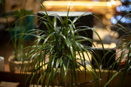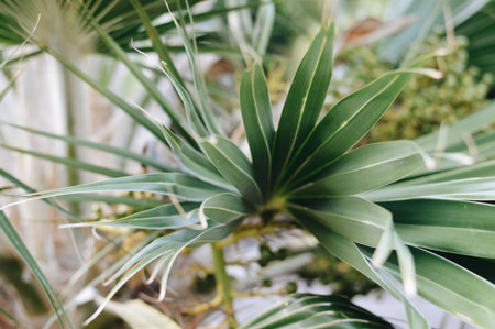 tropical looking cordyline grass tree close-up shot at shallow depth of field