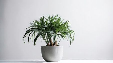 Ponytail green Palm against white wall. Background, copy space, space for text