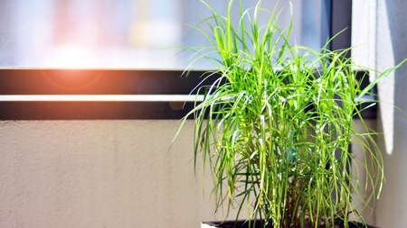 Indoor plant. Palm tree indoors. Plant in the interior. Green tree in a pot.
