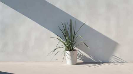 white wall with botanical accuracy style, featuring desertwave vibes and a soft focus lens. the urban minimalism is enhanced by bold shadows and a symmetrical arrangement, creating a california plein air aesthetic. ai generated