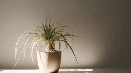 Ponytail Palm in a White Pot Against a White Background. Concept Indoor Plants, Home Decor, Minimalist Design, Greenery, Plant Care