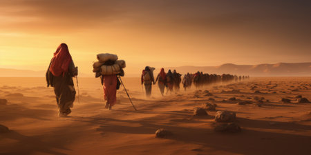 Modern world problem refugees, displaced immigrants emigrants, war victim fleeing military conflict, saving your own life, homelessness waifless children, group of people with luggage