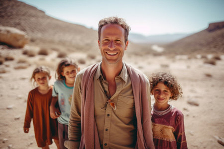 Grandparents with grandchildren in the desert of Wadi Rum, Jordan
