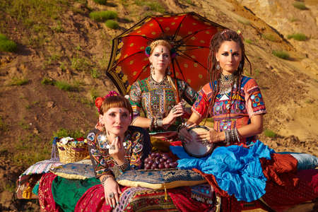 Portrait of a group of multi ethnic Muslim people in the ancient city of Petra, Jordan