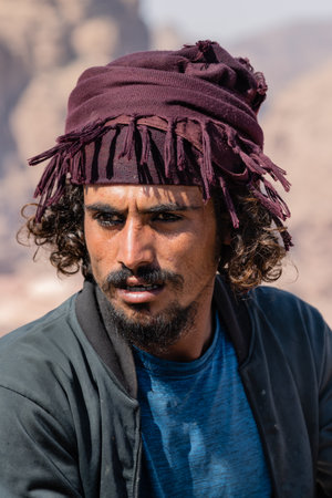 Petra, Wadi Musa, Jordan - October 28 2022: Jordanian Bedouin Man Portrait