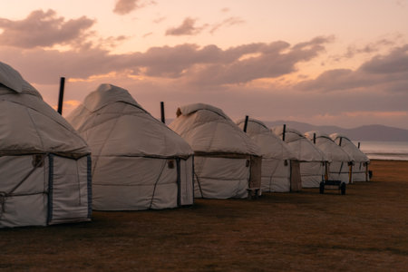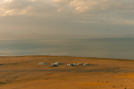Yurts on Son kol lake Kyrgyzstan . High quality photo