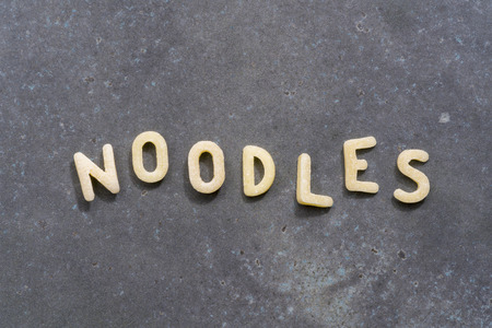 Letter noodles on a gray plate of slate