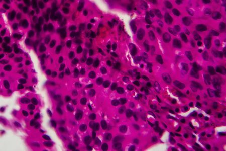 Squamous cell carcinoma diseased tissue under the microscope 100x