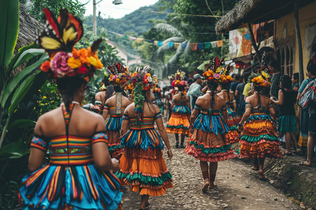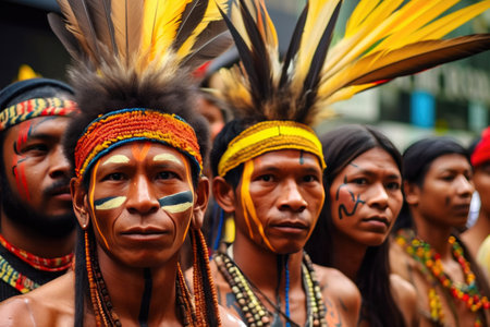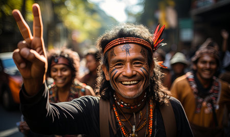 Colorful Indigenous Festival Celebrates Traditional Clothing and Cultures Outdoors generated by artificial intelligence