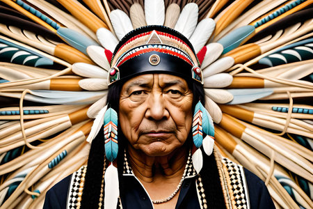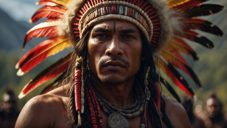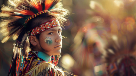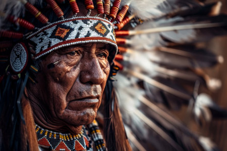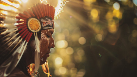 Depicting a rich history, a person adorned with a Native American headdress symbolizes cultural honor.