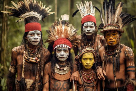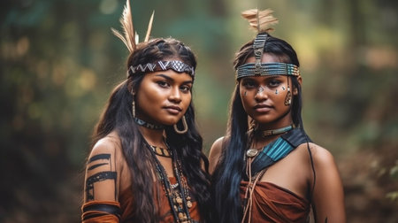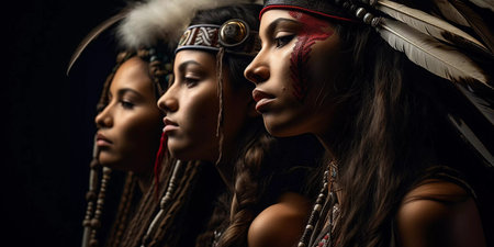 Portrait of indigenous tribe. Traditional Indians with painted faces. Native american people. Created with Generative AI