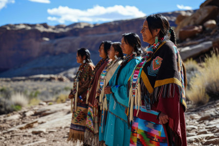 Navajo tribe in their traditional clothing, living in desert Ai generated