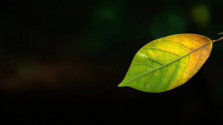 Detailed Macro Photograph of a Single Green and Yellow Leaf