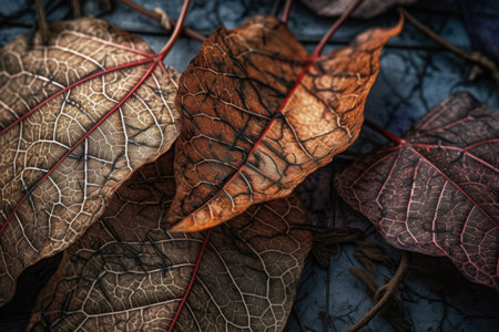 stack of fallen leaves with intricate veins and detailed textures, created with generative ai